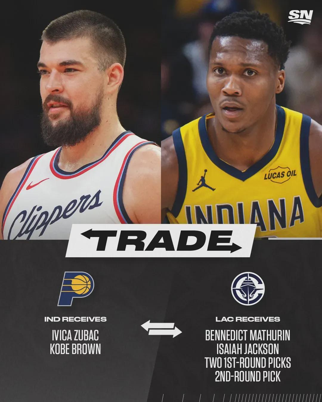 那快船今年还有首轮签吗?只能说理论上有。今年2月6日,步行者送出马瑟林 、以赛亚-杰克逊、2026年首轮签(双重保护)、2029年首轮签和2028年次轮签,5换2得到祖巴茨和科比-布朗。如果步行者抽到第5-9顺位,要送给快船。