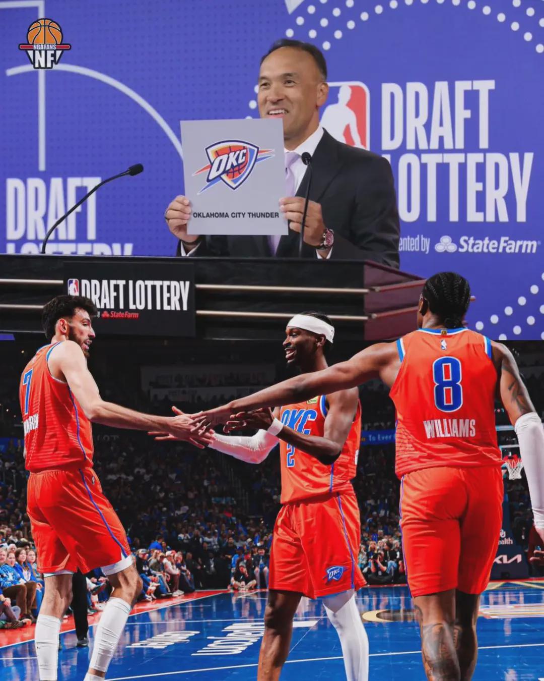 目前雷霆状元签概率排名联盟第12,倘若明天勇士打进季后赛,雷霆状元签概率升至第11。值得一提的是,去年独行侠正是以联盟第11的概率抽中状元签。雷霆一边争夺总冠军,一边冲击着状元签,哪怕抽到前四顺位都是赚大了!