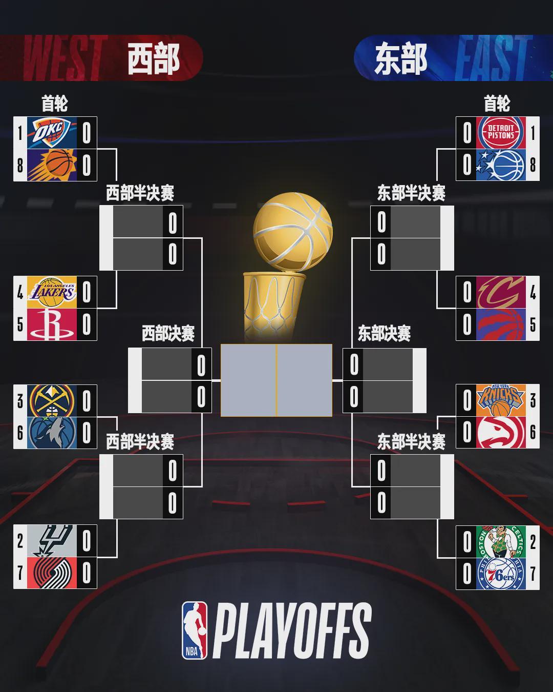最后来看看季后赛完整对阵,明天凌晨1点季后赛首轮开打。你觉得哪两支球队能会师总决赛?