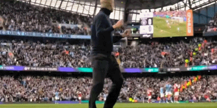 看到哈弗茨为阿森纳扳平比分之后,阿尔特塔高举双臂庆祝,瓜迪奥拉则抱头遗憾。