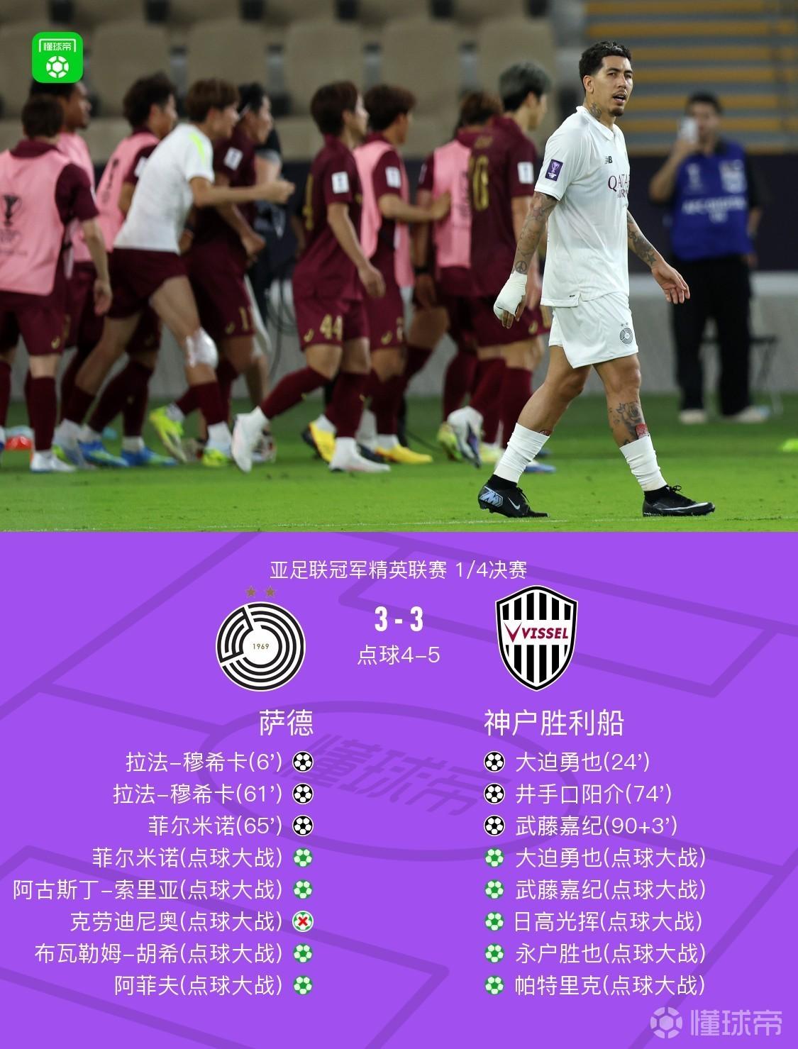 神户8-7淘汰萨德晋级亚冠四强,菲尔米诺传射,武藤嘉纪绝平