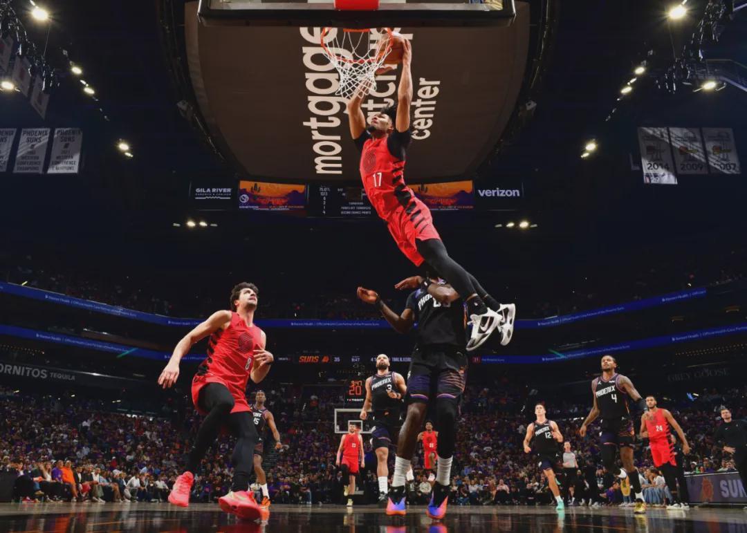 杰伦-格林和布克复出,为了附加赛拼了。太阳首发:布克、杰伦-格林、乔丹-古德温、狄龙-布鲁克斯、马克-威廉姆斯。开拓者首发:霍勒迪、亨德森、阿夫迪亚、卡马拉、克林根。赛季开始前,估计没人能想到开拓者会杀进前八!