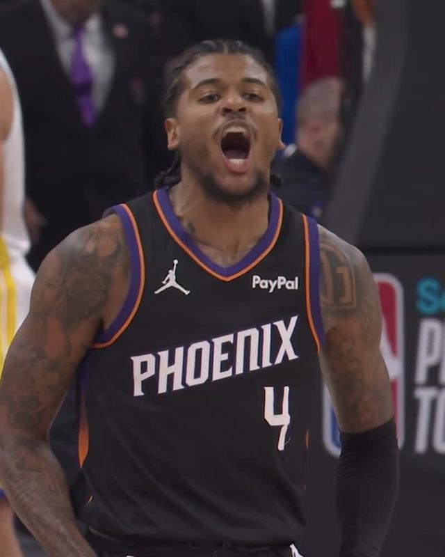 再看看太阳队这边,乔丹·古德温不仅拿下了19分和9个篮板,还在很长一段时间里承担起了死磕库里的防守重任,绝对是赢球的大功臣。德文·布克也是稳如磐石,虽然运动战12投仅5中,但他在罚球线上10罚全中,最终交出了20分、8次助攻和6个篮板的“准两双”成绩单。