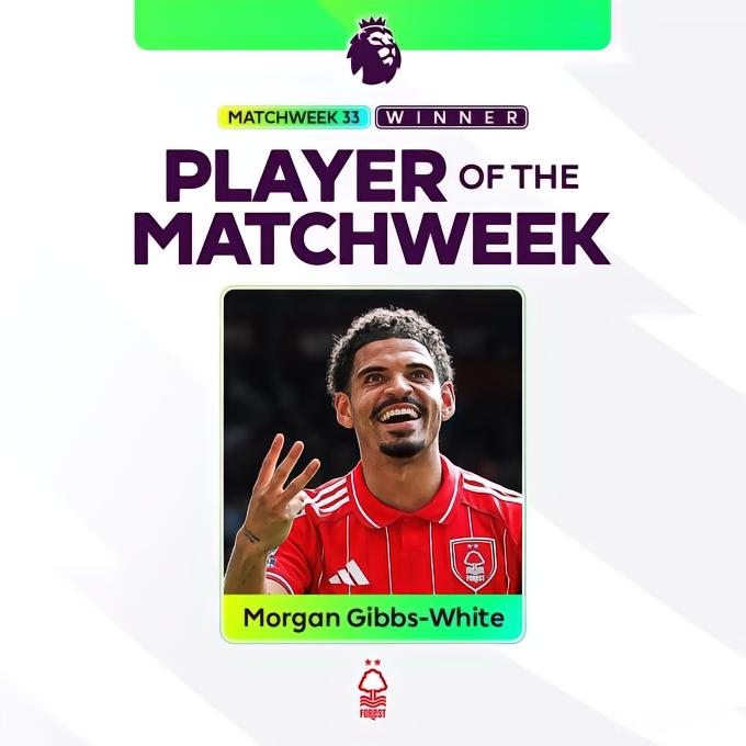 北京时间4月24日,英超官方发布公告称,吉布斯-怀特当选第33轮比赛最佳球员。
