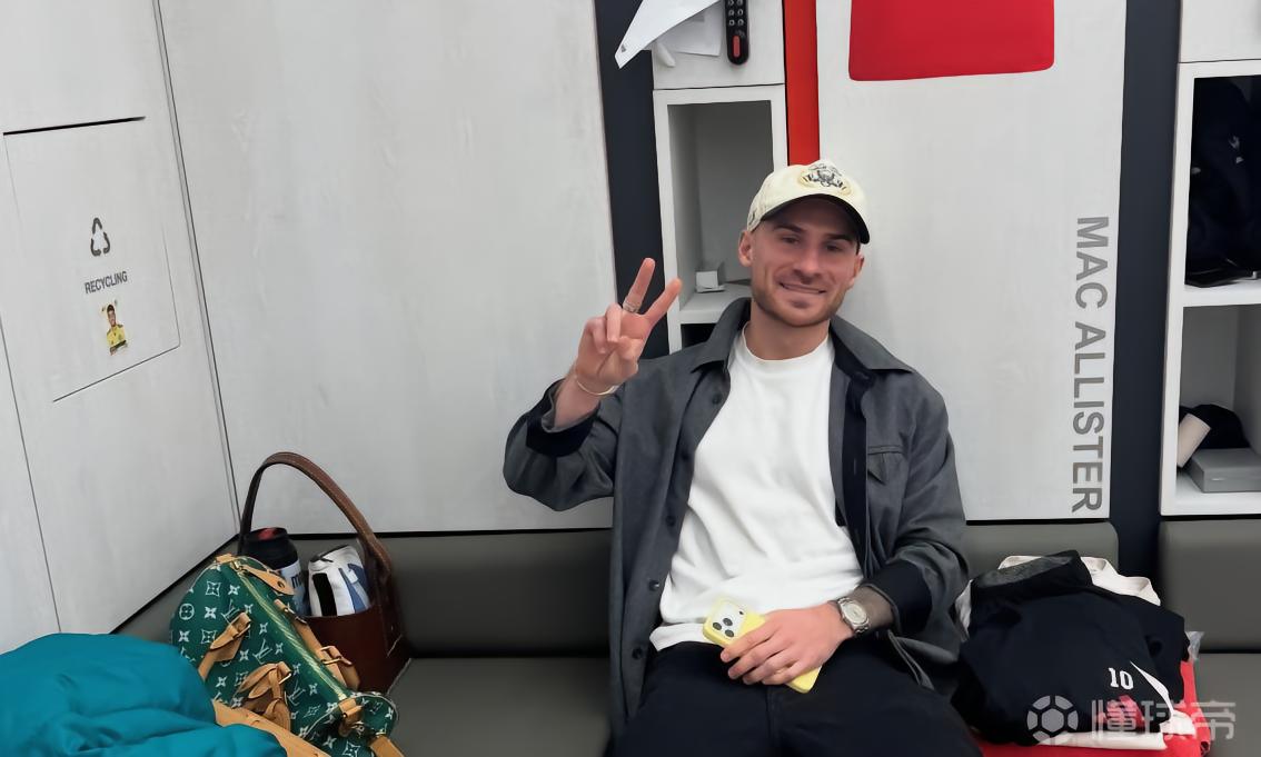 照片拍摄的是队友麦卡利斯特在红军更衣室摆造型拍照的画面。这本是一张普通的照片,但图像左侧的一个细节却引发了关注。在左侧的可回收垃圾箱门上,竟然贴着一张前队友迪亚斯的贴着,而这位球员此时早已远赴慕尼黑。