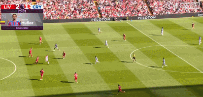 第72分钟,伍德曼受伤倒地,穆尼奥斯吊射空门得手,水晶宫1-2利物浦!