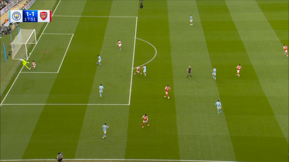然而,仅仅过了2分钟,多纳鲁马就出现了低级失误。禁区内接到回传之后,多纳鲁马解围失误,球打在哈弗茨的身上反弹入网,阿森纳迅速扳平了比分。