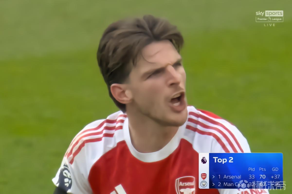 英超第三十三轮,阿森纳客场1-2不敌曼城后,榜首优势被缩小至3分。终场哨响后,天空体育镜头捕捉到赖斯在场上向厄德高喊话“还没结束”。
