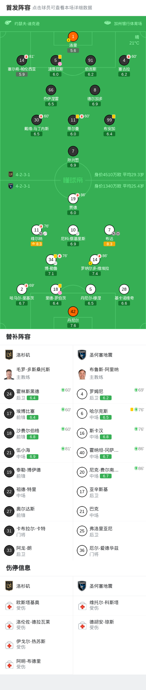 北京时间4月20日美国职业大联盟 常规赛,洛杉矶主场对阵圣何塞地震。洛杉矶波蒂厄斯自摆乌龙。圣何塞地震布达梅开二度,维尔纳破门,里德-罗伯茨自摆乌龙。最终比分洛杉矶 1-4 圣何塞地震。