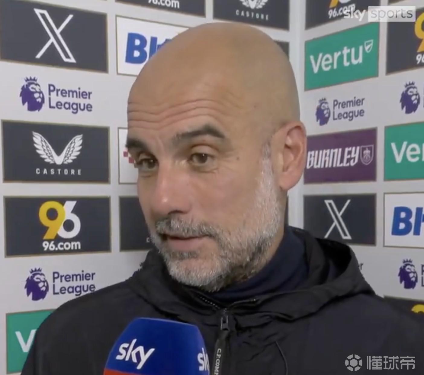 英超第34轮,曼城客场对阵伯恩利,赛前,曼城主帅瓜迪奥拉接受了天空体育的采访。